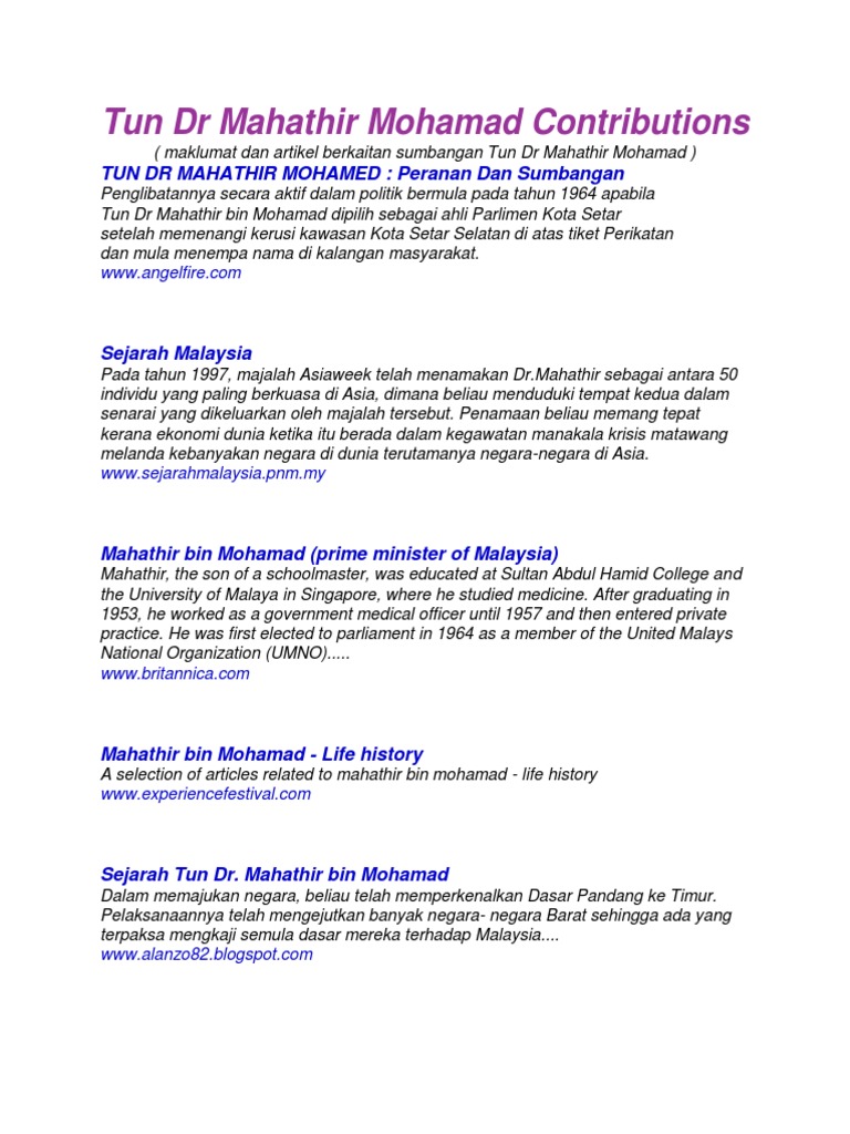 Tun Dr Mahathir Mohamad Docx Sejarah Malaysia Tema 4 4 2 2 Pembangunan Ekonomi Soalan Pengenalan Nilaikan Sumbangan Tun Dr Mahathir Mohamad Dalam Course Hero