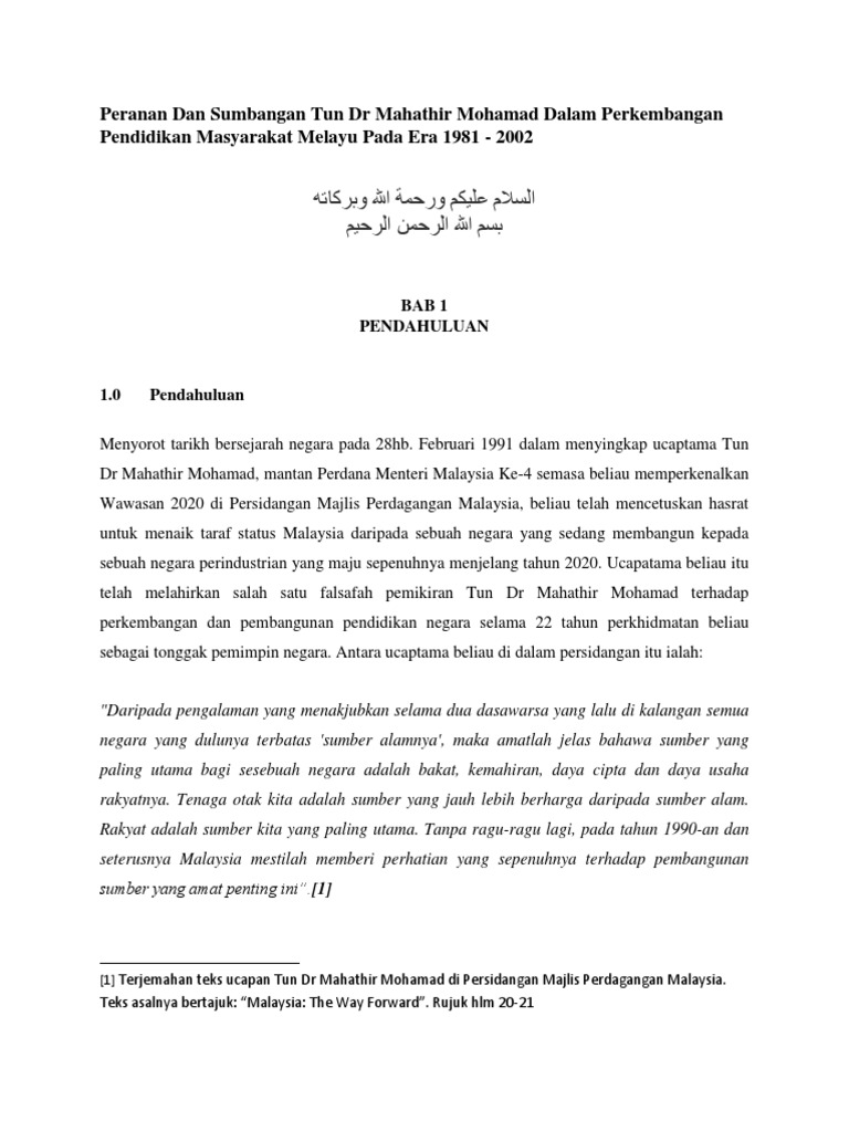 Pdf Peranan Dan Sumbangan Tun Dr Mahathir Mohamad Dalam Pembangunan Pendidikan Tinggi Masyarakat Melayu